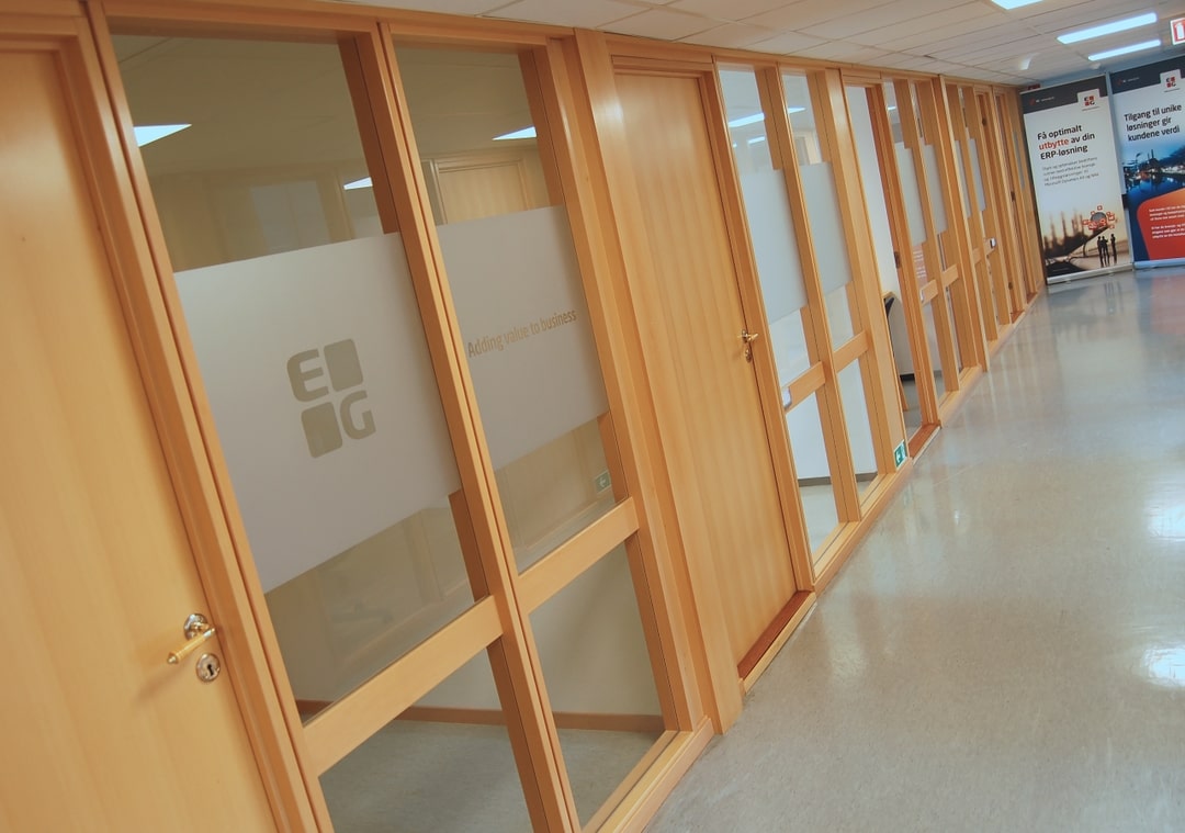 Frostet folie. Til vinduer, hindrer innsyn, men stenger ikke lyset ute. Mulighet for å skjære ut logo, tekst eller annen dekor i folien. Kom innom for å se prøver av tre ulike nyanser; Etched, Milkey og Silver Etched.